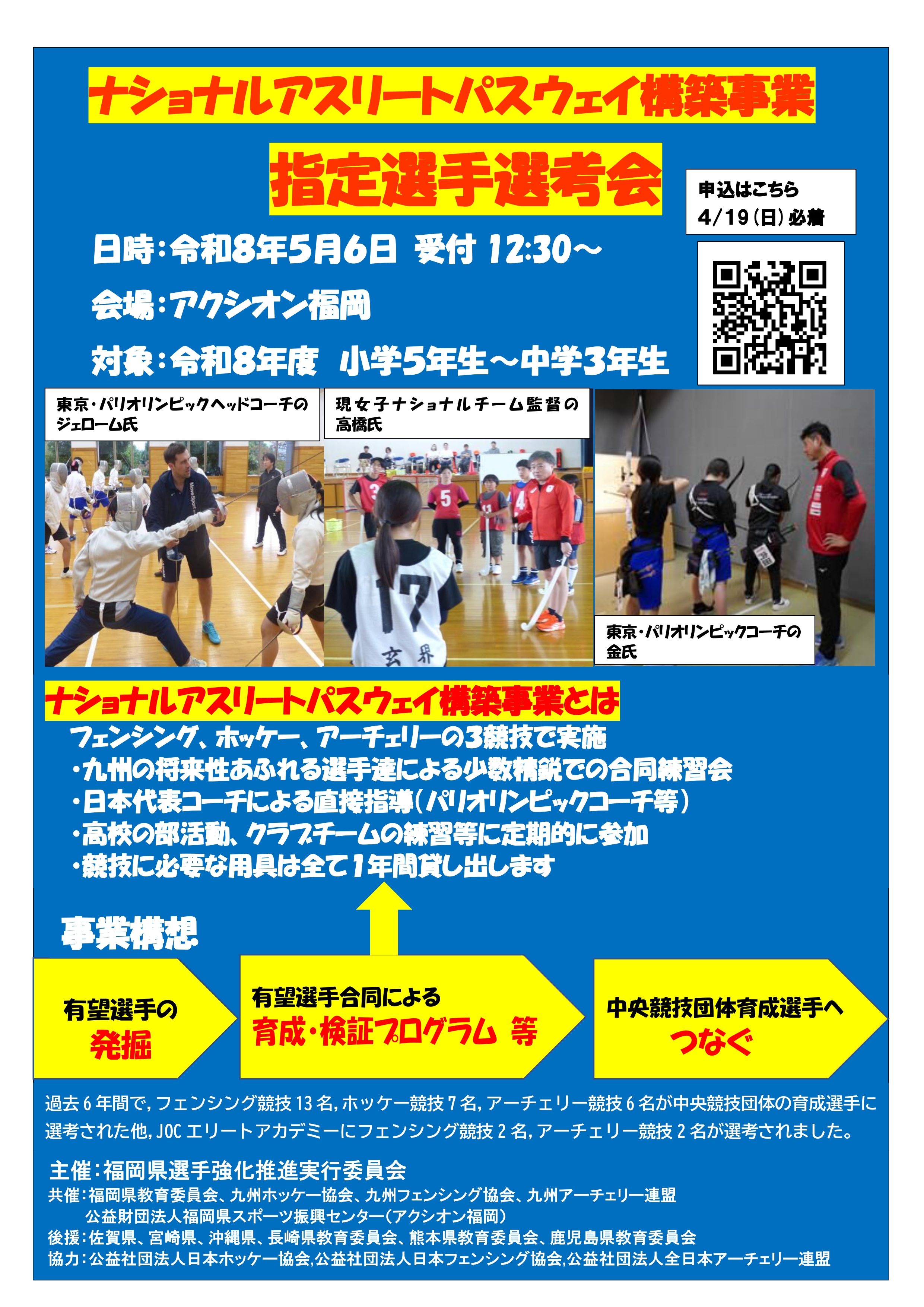 ナショナルアスリートパスウェイ構築事業指定選手選考会が令和8年5月6日(水)にアクシオン福岡にて開催されます。